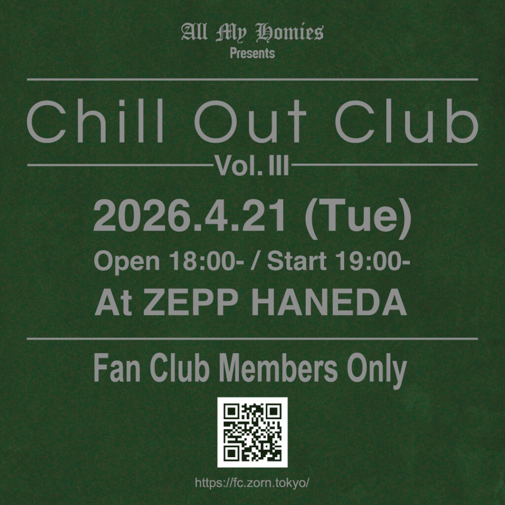 ZORN FCイベント「Chill Out Club Vol.Ⅲ」をZepp Haneda(TOKYO)で4月21日(火)に開催